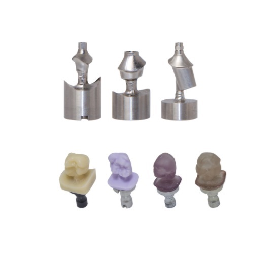 Materials: Premilled abutments, zirconium dioxide, aluminum oxide, PMMA, plastics, composites, wax, glass ceramic, hybrid ceramics